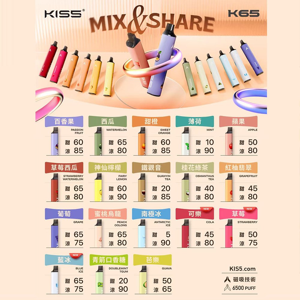 < img height="1" width="1" style="display:none" src="https://www.facebook.com/tr?id=641530305674067&ev=PageView&noscript=1" /> 【台灣現貨】KISS鎧斯6500口 kis5一次性電子煙 大容量拋棄式 - 臺灣電子煙商店 TEST85990